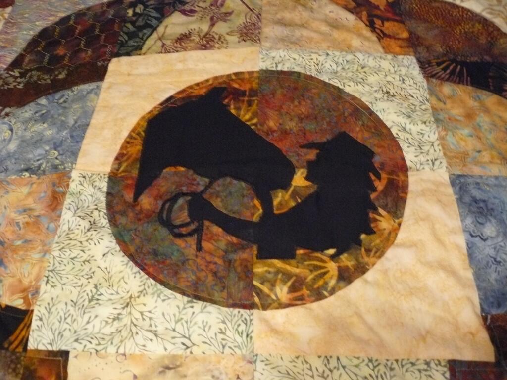 2015 June, Linda B. made this awesome western quilt. By special request, she wanted some of the larger silhouettes made smaller. And she finished it only a few days after receiving them. way to go -