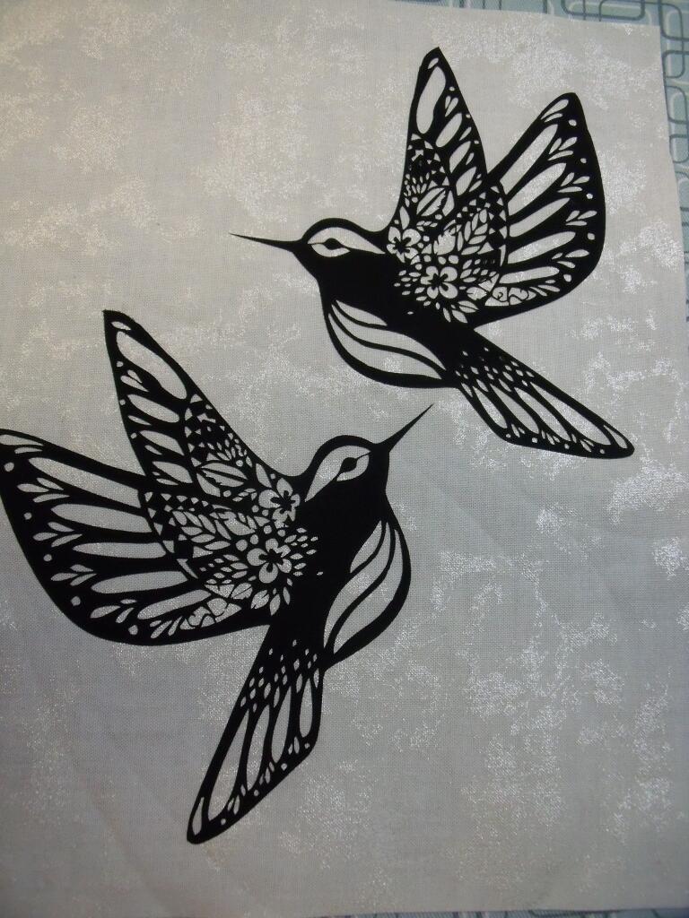 2015, May, These delicate humming birds were a special request by Rose, my husband's cousin. It's a good thing it's going in a picture frame, because i didn't want to stitch it down. -